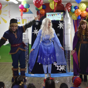 Show con 3 personajes de Disney + Títeres (tenemos princesas, villanas, personajes masculinos)
